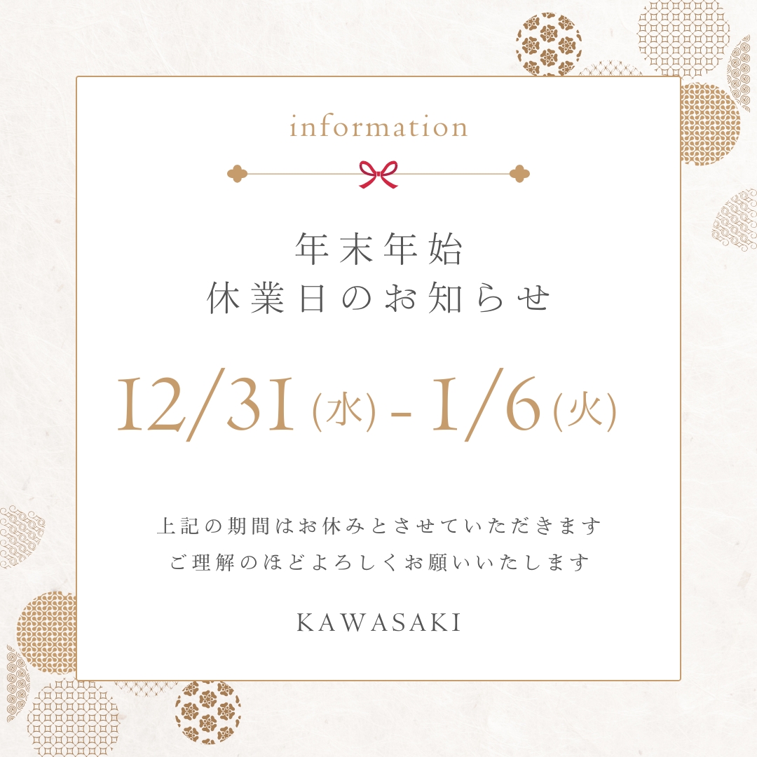 誠に勝手ながら、下記の期間を年末年始休業とさせていただきます。