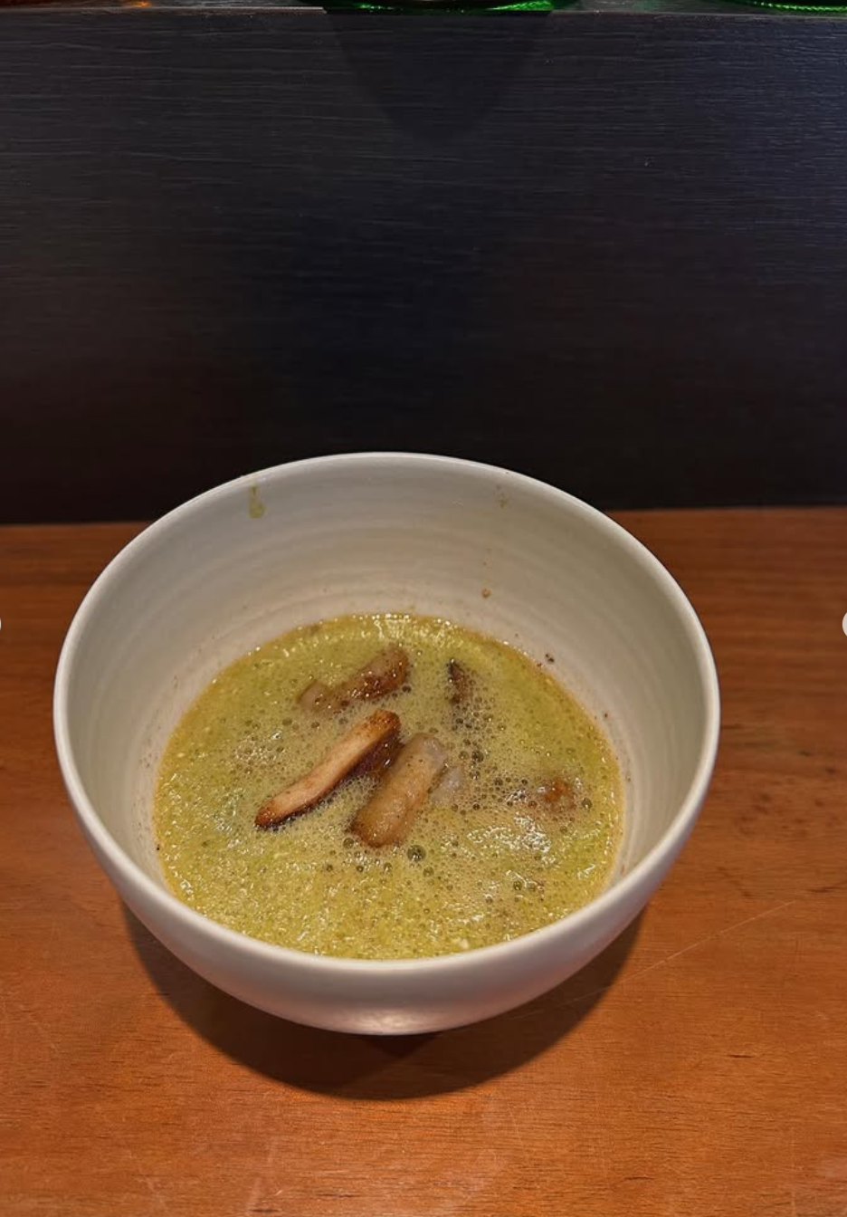 姫神芋とホタテ 伊勢海老のスープ¥1800(+300)